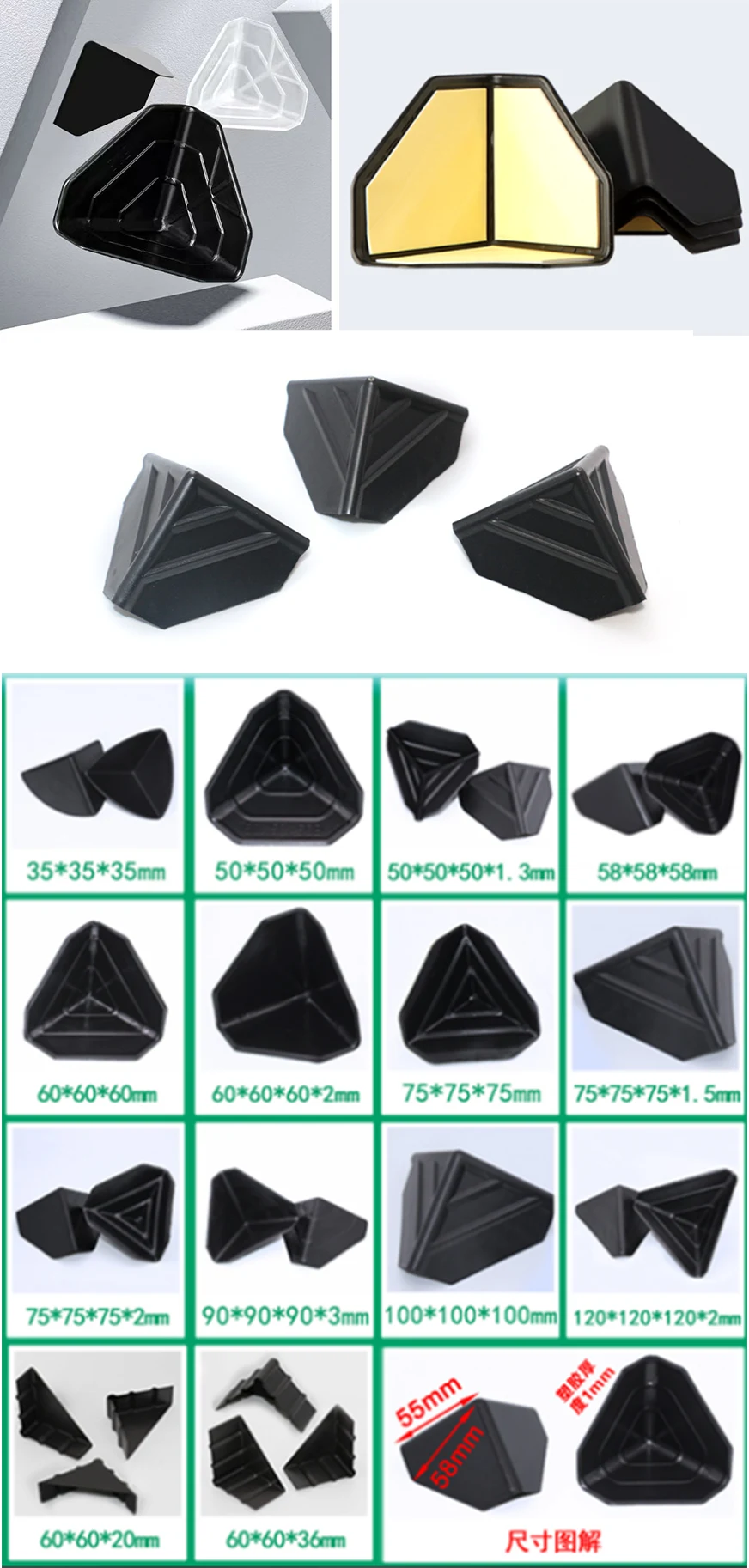 Pelindung sudut tiga sisi kami tersedia dalam berbagai ukuran dengan ketebalan dinding yang bervariasi. Pilihannya mencakup dinding datar dan dinding berusuk yang diperkuat, memungkinkan kami memberi Anda layanan yang komprehensif dan nyaman.